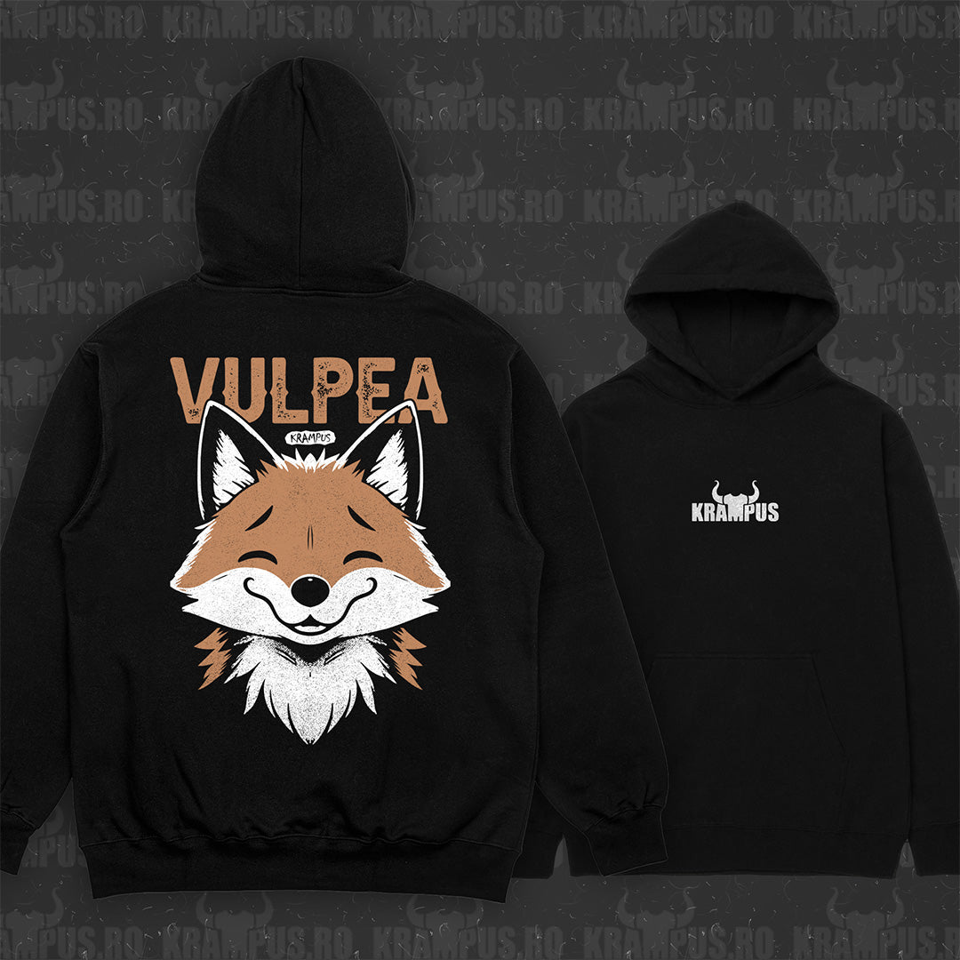Hanorac Vulpea Portret! Adaugă un strop de inteligență și șarm garderobei tale cu hanoracul "Vulpea din Ursul Păcălit de Vulpe", inspirat din povestea clasică românească. Acest hanorac vibrant celebrează viclenia și istețimea vulpii, oferindu-ți un look unic și plin de personalitate.