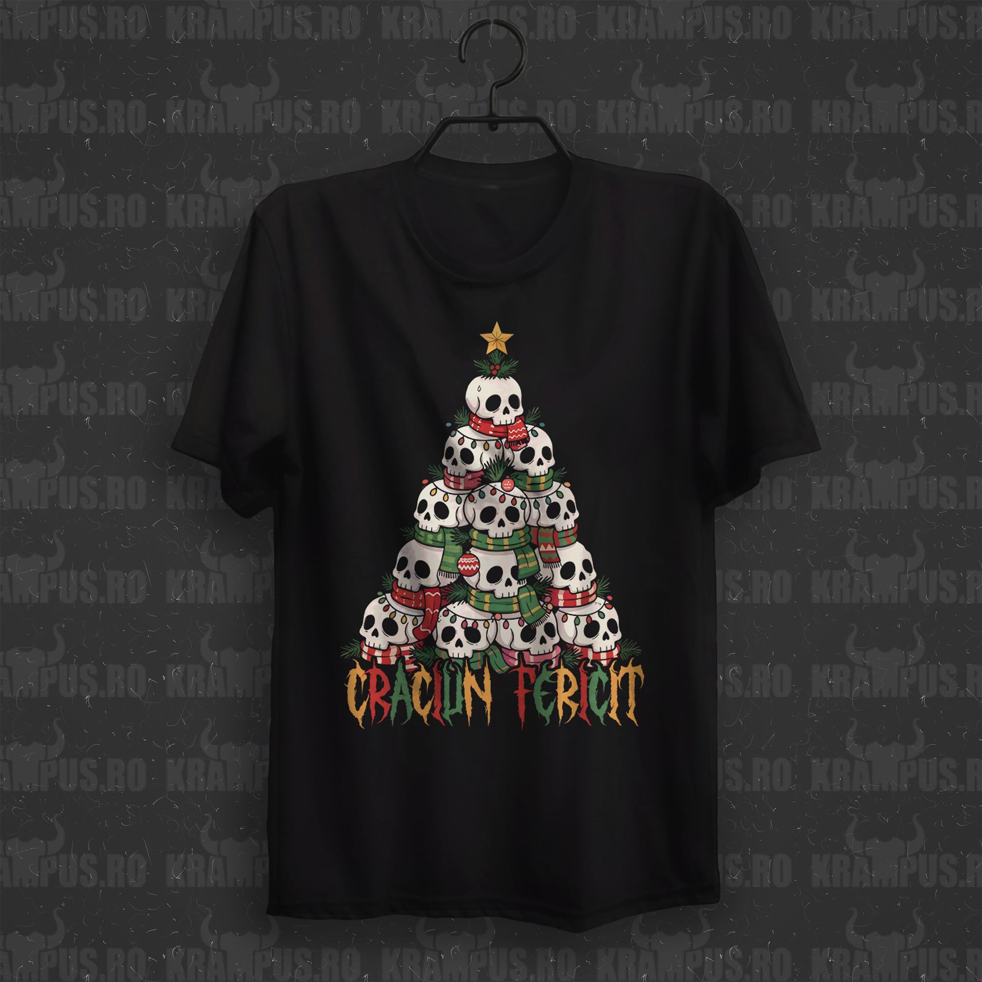 Poartă tricoul „Brad Capete de Mort Craciun Fericit” și adu spiritul Crăciunului într-o versiune mai dark, mai goth și complet nonconformistă. Perfect pentru cei care nu se regăsesc în „ho-ho-ho”-urile clasice și preferă o atmosferă edgy, cu accente alternative și un vibe care transformă sărbătorile într-o declarație de stil.