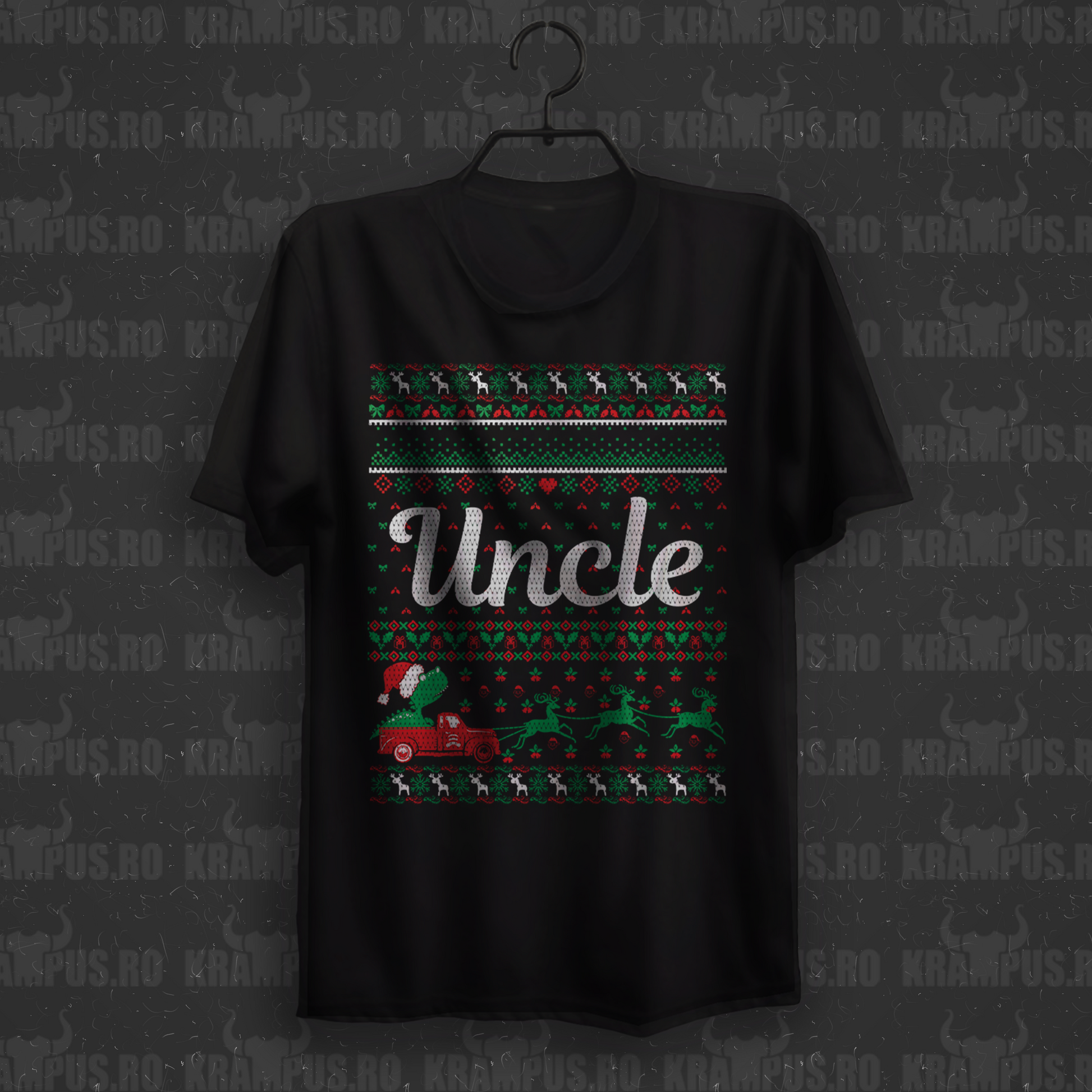 Acest tricou de Crăciun, „Christmas Uncle”, este alegerea perfectă pentru unchiul care aduce mereu glume, voie bună și haos controlat la masa de sărbători. Acest tricou prezintă un mesaj festiv și amuzant, ideal pentru unchiul care știe să întrețină atmosfera și să ofere cadouri… sau povești memorabile.